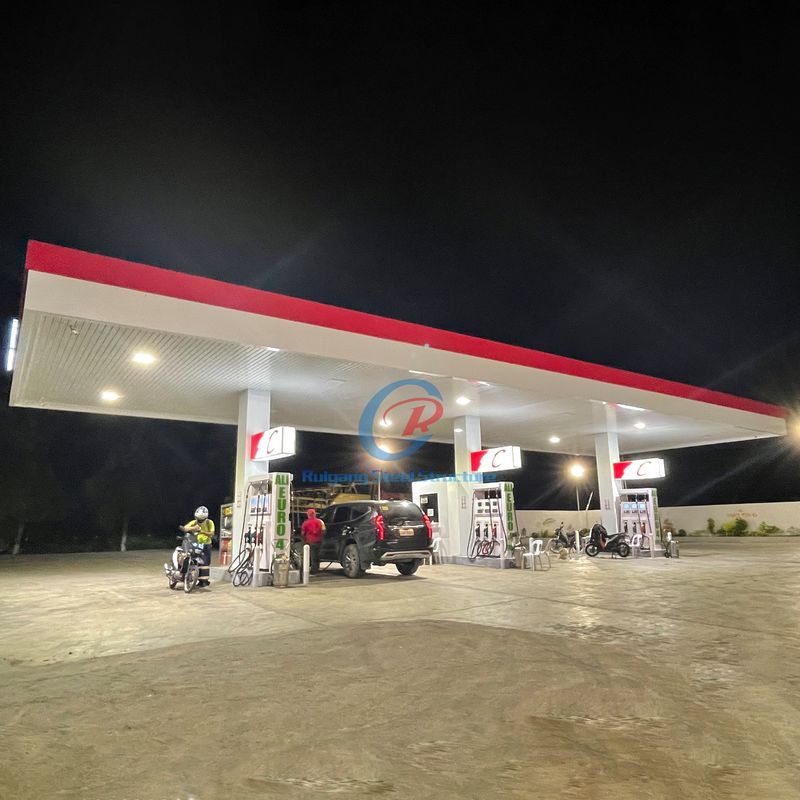 कारखाने सीधे पूर्वनिर्मित गैस स्टेशन हल्के इस्पात संरचना पेट्रोल पंप छत